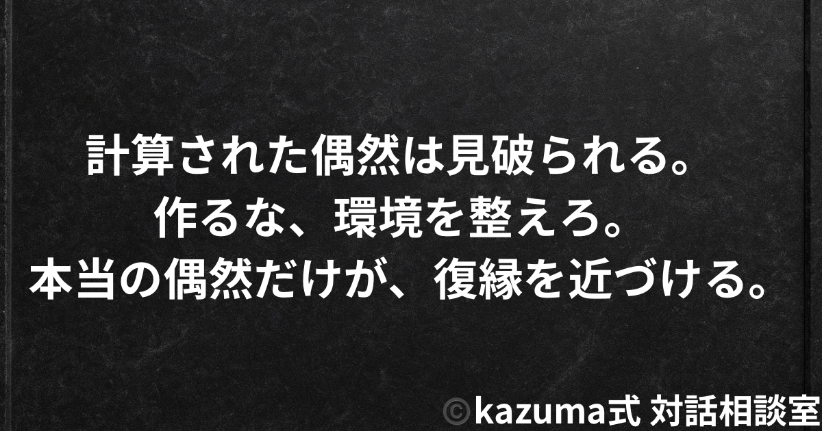 - 偶然の再会を「狙う」べきではない。計算された偶然は見破られ、復縁は遠のく。