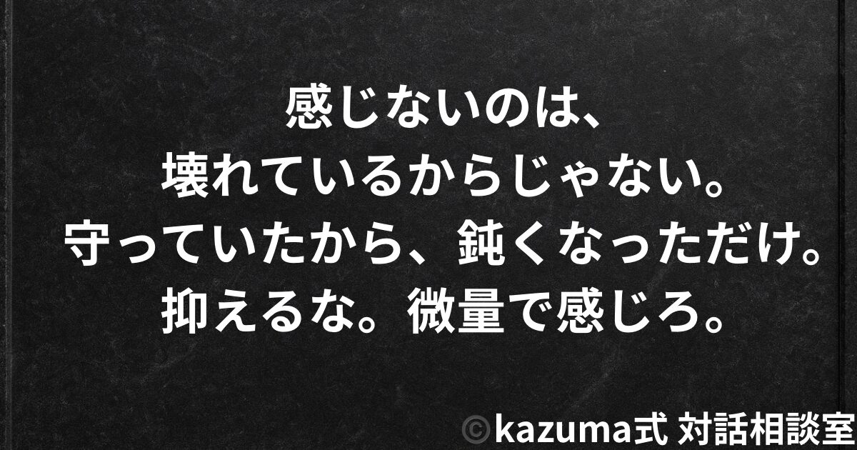 感じないのは、壊れているからじゃない。守っていたから、鈍くなっただけ。抑えるな。微量で感じろ。それが、感情を取り戻す道だ。