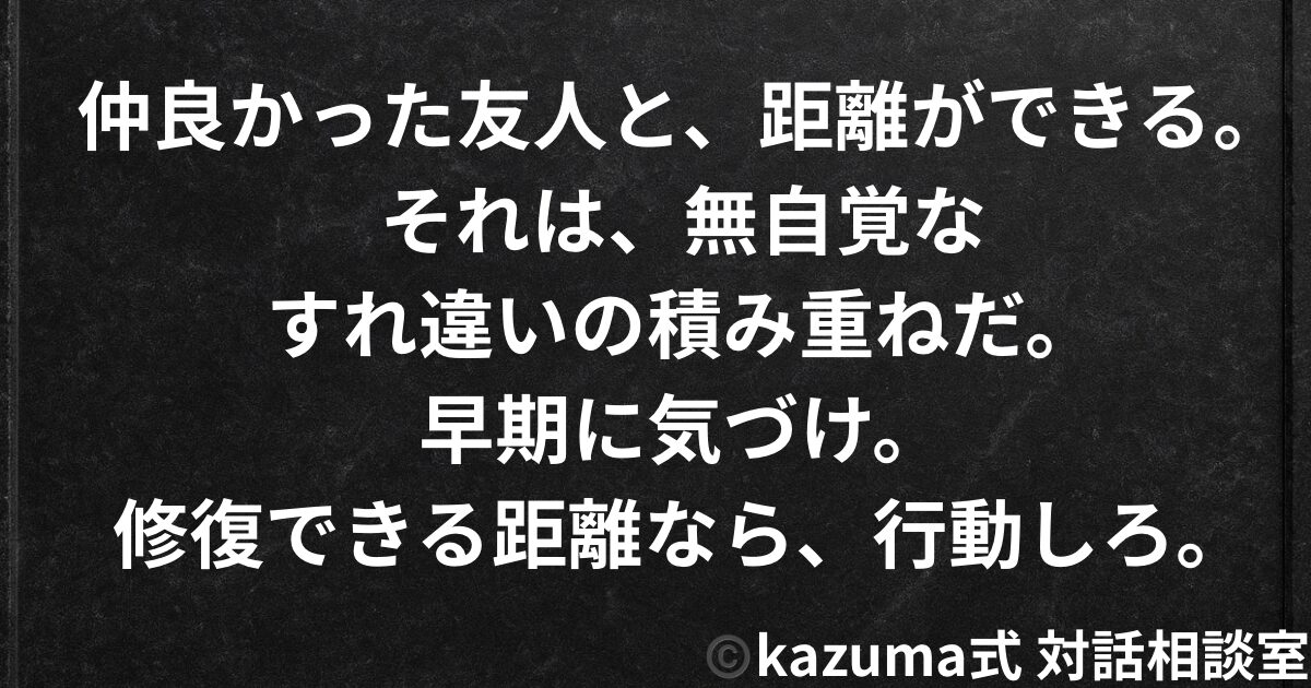仲良かった友人と距離ができるのは、生活環境の変化・価値観のズレ・優先順位の変化・コミュニケーション不足・無自覚な違和感の放置が原因。多くの場合、一つの出来事ではなく小さなすれ違いの積み重ねが関係を壊す。