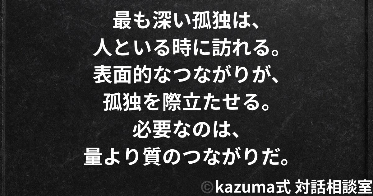 君が今、人混みで孤独を感じているなら、それは表面の充足と内面の空白のギャップだ。深いつながりを一つ持て。それが君を救う。