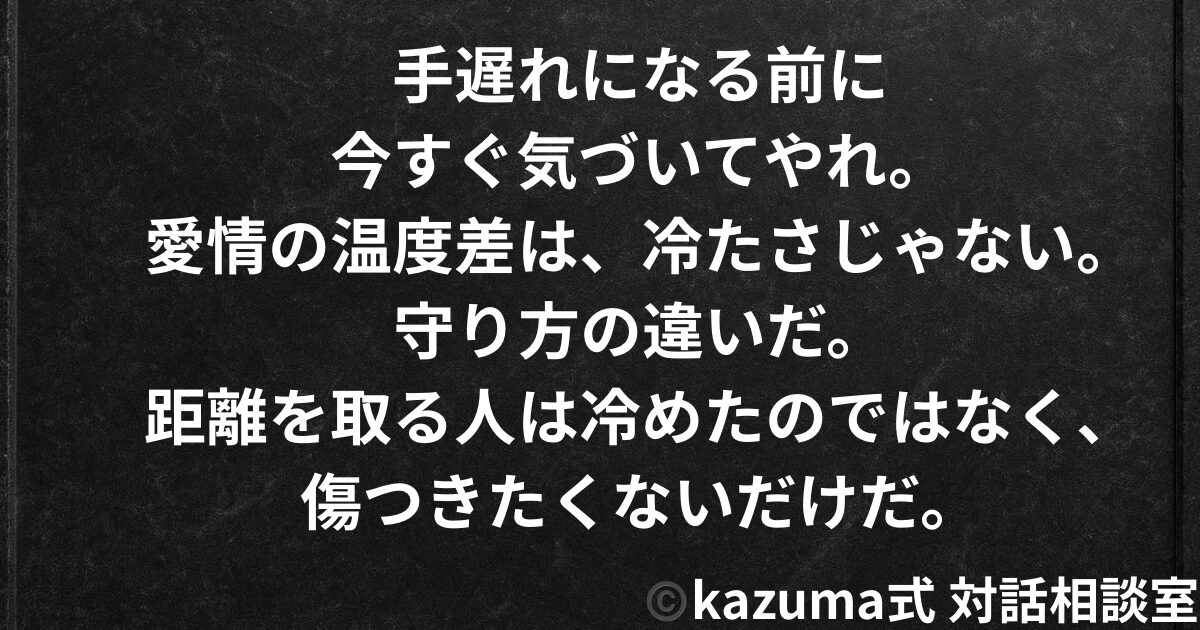 愛の温度差は、冷たさじゃなく”守り方”の違いだ。君と相手の温度が違うだけ。その違いを、受け入れろ。