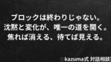Kazuma式は答えを与えることはしない。共に見つけ、見届けることが原則だ。