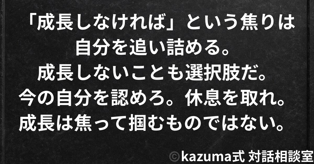 「成長しなければ」という焦りは、自分を追い詰める。成長しないことも、選択肢だ。今の自分を認めろ。