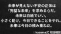 「成長しなければ」という焦りは、自分を追い詰める。成長しないことも、選択肢だ。今の自分を認めろ。休息を取れ。他人のペースで生きるな。成長は、焦って掴むものではない。