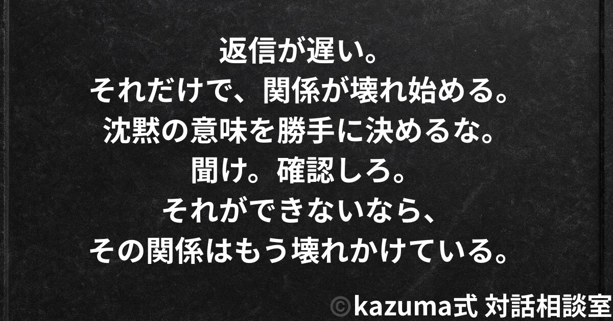 相手の沈黙の意味を勝手に決めるな。聞け。確認しろ。 それができないなら、その関係はもう壊れかけている。