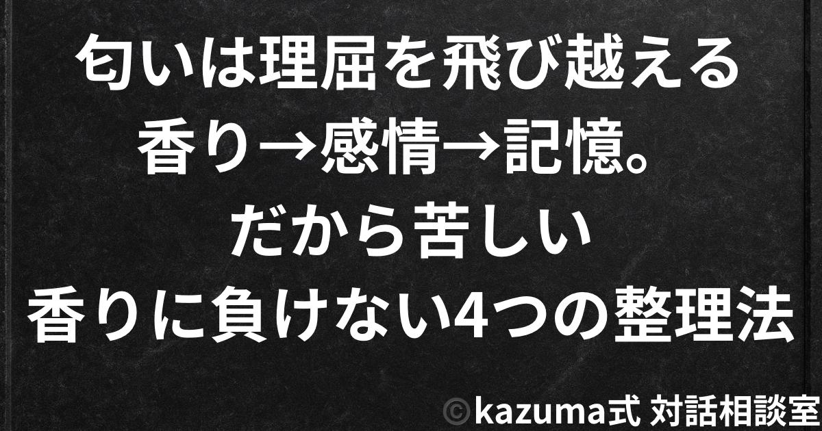 - 匂いの観察・新しい記憶の上書き・言語化・積極的な向き合いで整理できる