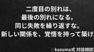 コミニケーション関係が壊れる前のサインを見抜く方法|手遅れになる前に気づけ Kazuma式 対話相談室は、創設者Kazumaの実体験をもとに、恋愛・人間関係・人生迷子といった”言葉にできない想い”を共に掘り起こす場だ。 【この記事の結論】関係が壊れる前には、必ずサインが出る傾向がある。会話の減少、感情の欠如... 2025.10.02コミニケーション人間関係の溝関係修復