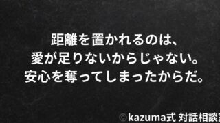 恋愛・人間関係距離を置かれる人の共通点|”安心を奪う存在”になっていないか 距離を置かれるのは、愛が足りないからじゃない。安心を奪ってしまったからだ。圧、期待、依存。これらが、相手を息苦しくさせる。安心を返すことが、関係を再構築する鍵だ。|Kazuma式 2025.10.11恋愛・人間関係